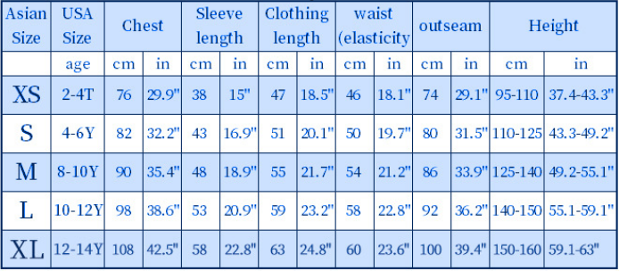 Size chart: